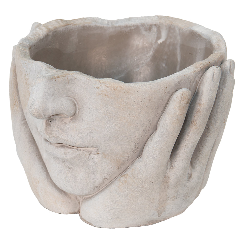 Clayre & Eef Bloempot Hoofd Ø 15x13 cm Beige Steen
