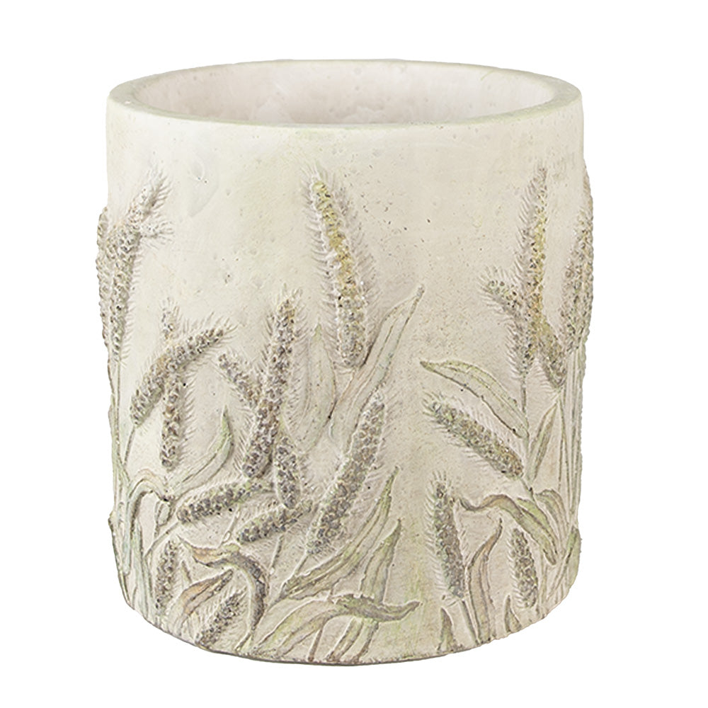 Clayre & Eef Bloempot Ø 13x13 cm Beige Groen Steen Korenhalmen