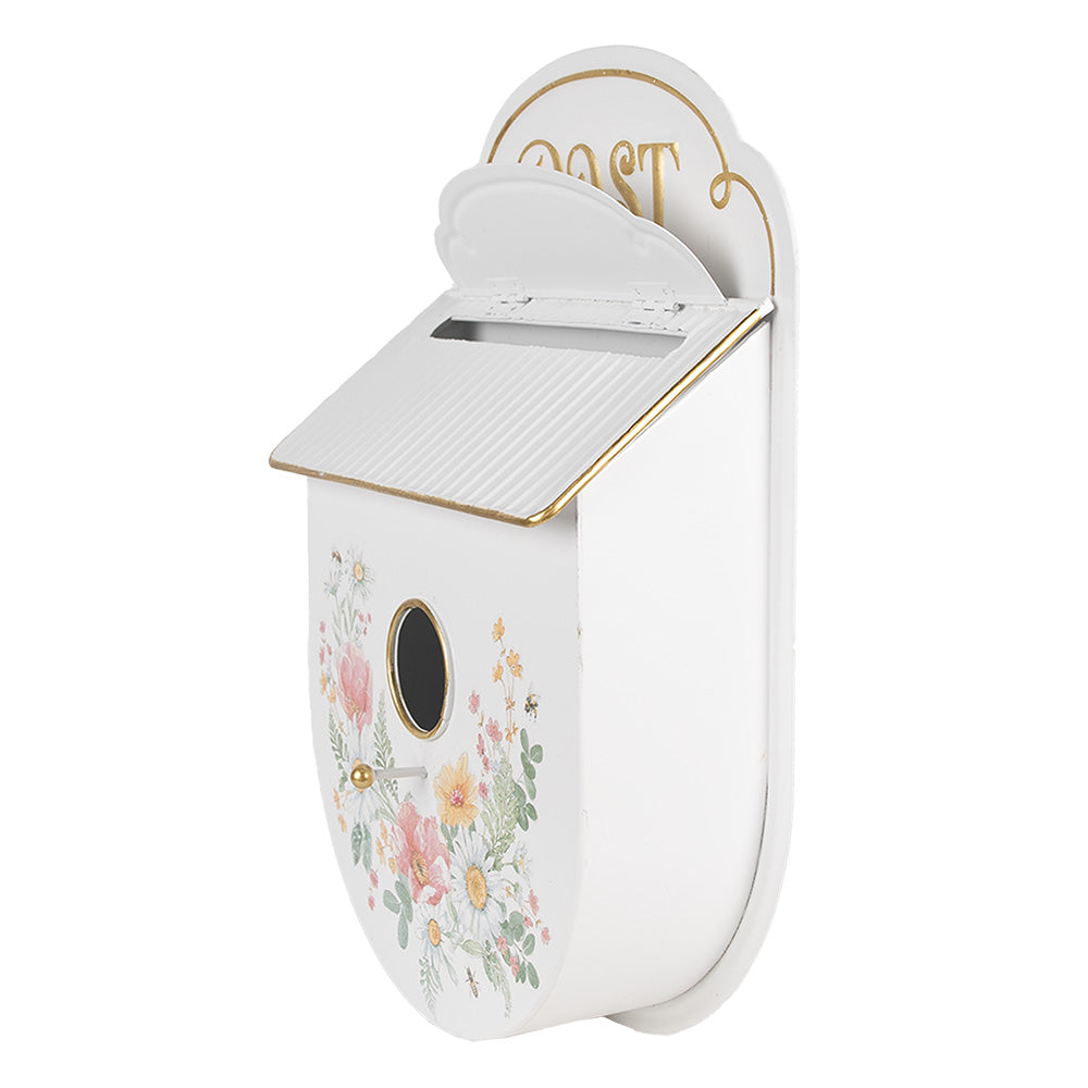 Clayre & Eef Brievenbus| Vogelhuis 27x11x41 cm Wit Metaal Bloemen