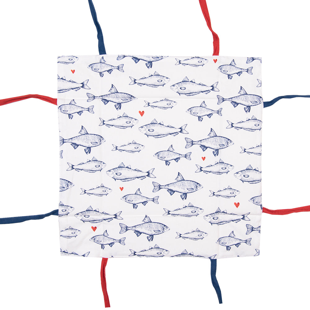 Clayre & Eef Broodmand 35x35x8 cm Wit Blauw Katoen Vierkant Vissen