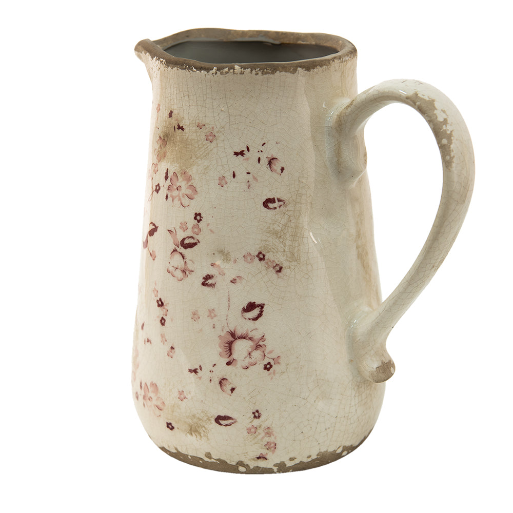 Clayre & Eef Decoratie Kan 1150 ml Roze Beige Keramiek Bloemen