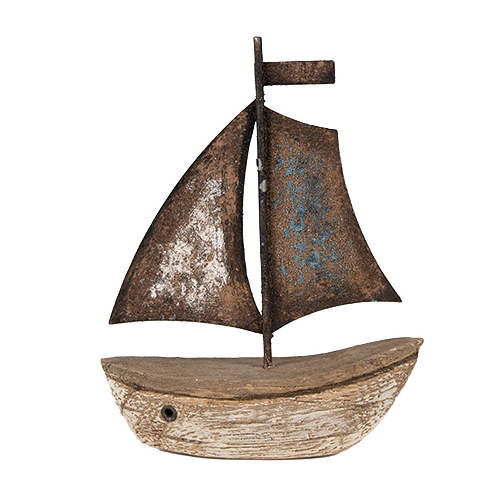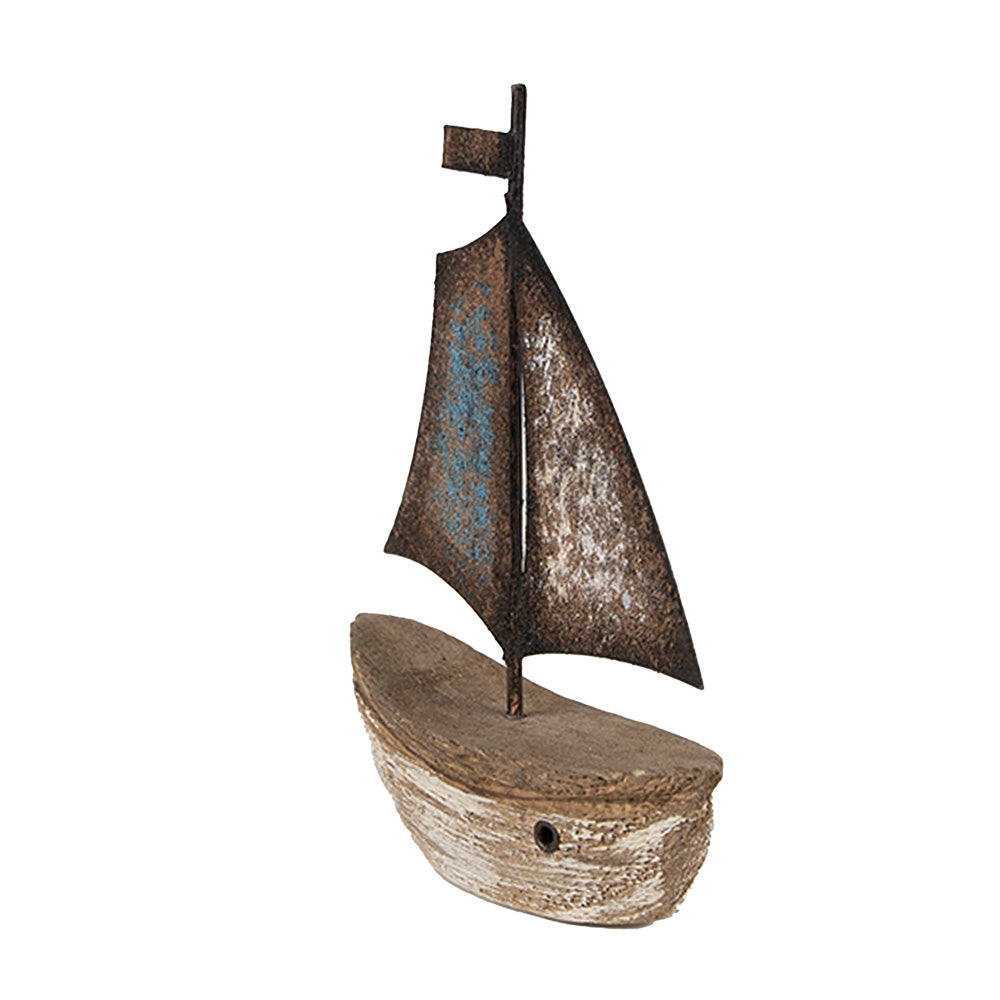 Clayre & Eef Decoratie Model Boot 11 cm Bruin Blauw Hout IJzer