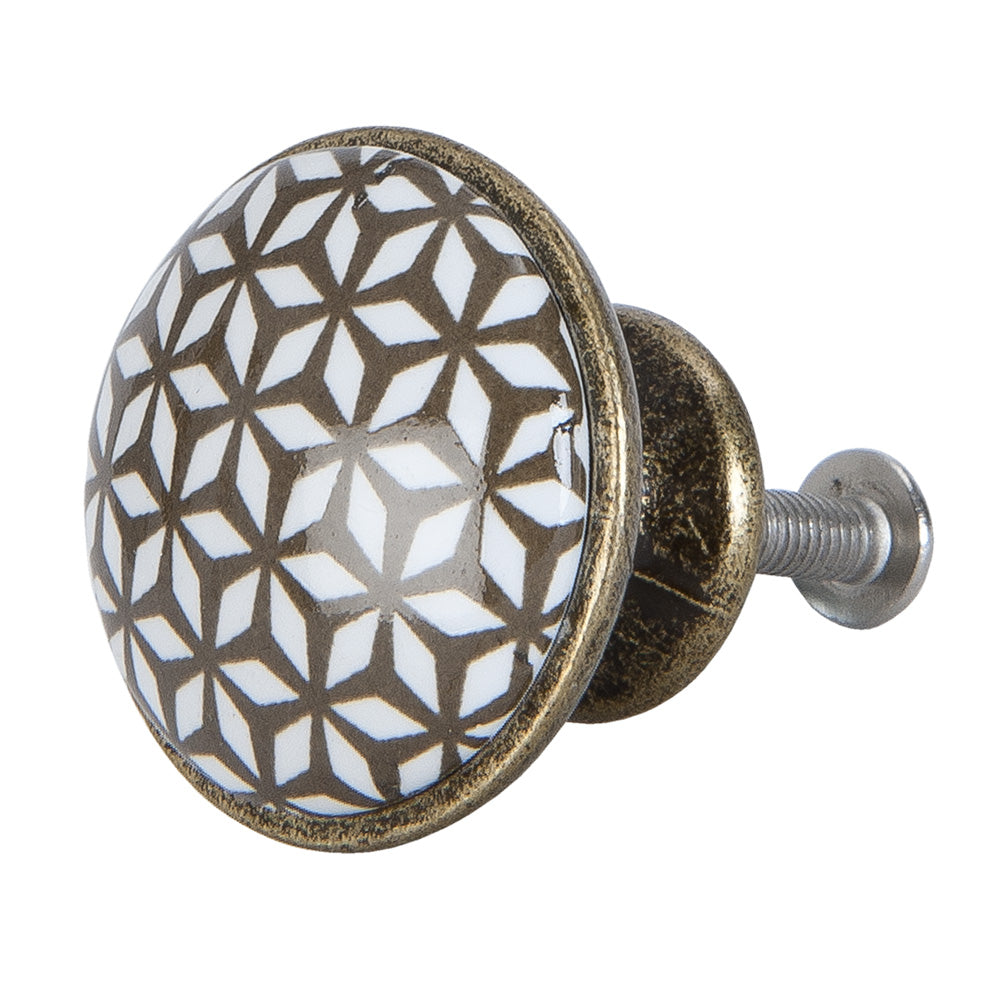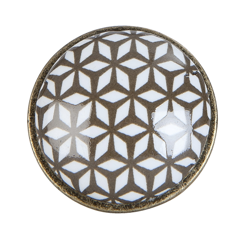 Clayre & Eef Deurknop Ø 2 cm Bruin Wit Keramiek Rond Meubelknop
