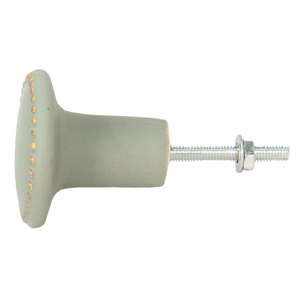 Clayre & Eef Deurknop Ø 4 cm Groen Goudkleurig Keramiek Meubelknop