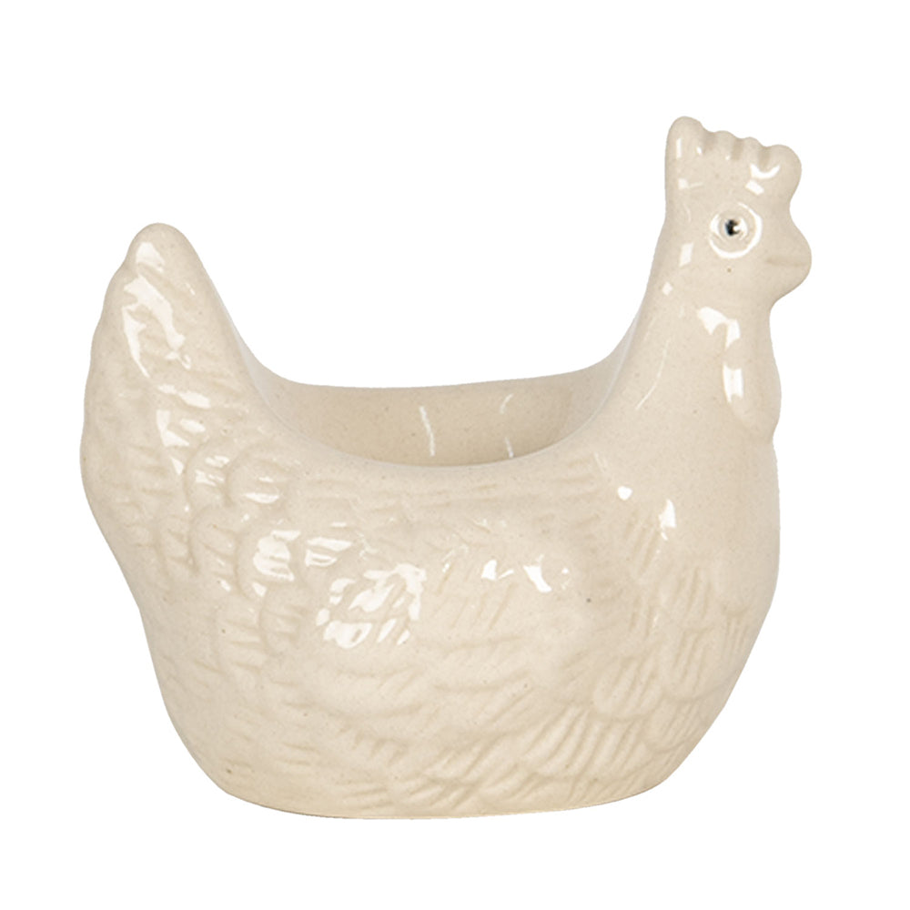Clayre & Eef Eierdopje Set van 4 Kip Ø 19x16 cm Beige Keramiek