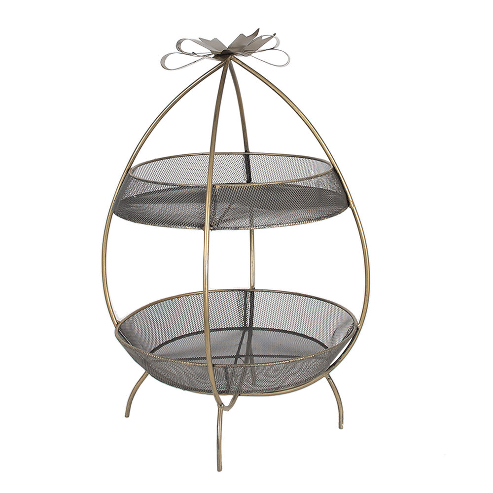 Clayre & Eef Etagère 2 laags Ø 34x51 cm Goudkleurig Ijzer Rond