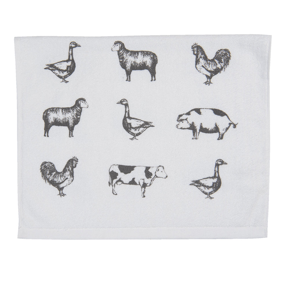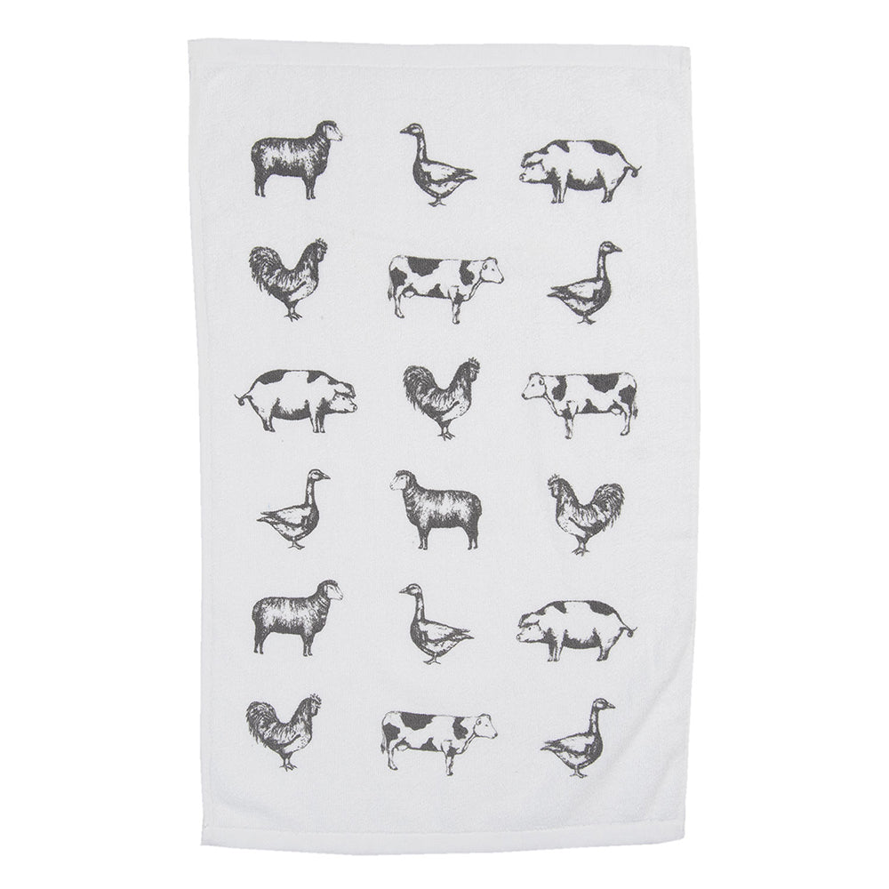 Clayre & Eef Gastendoekje 40x66 cm Grijs Wit Katoen Boerderij Dieren