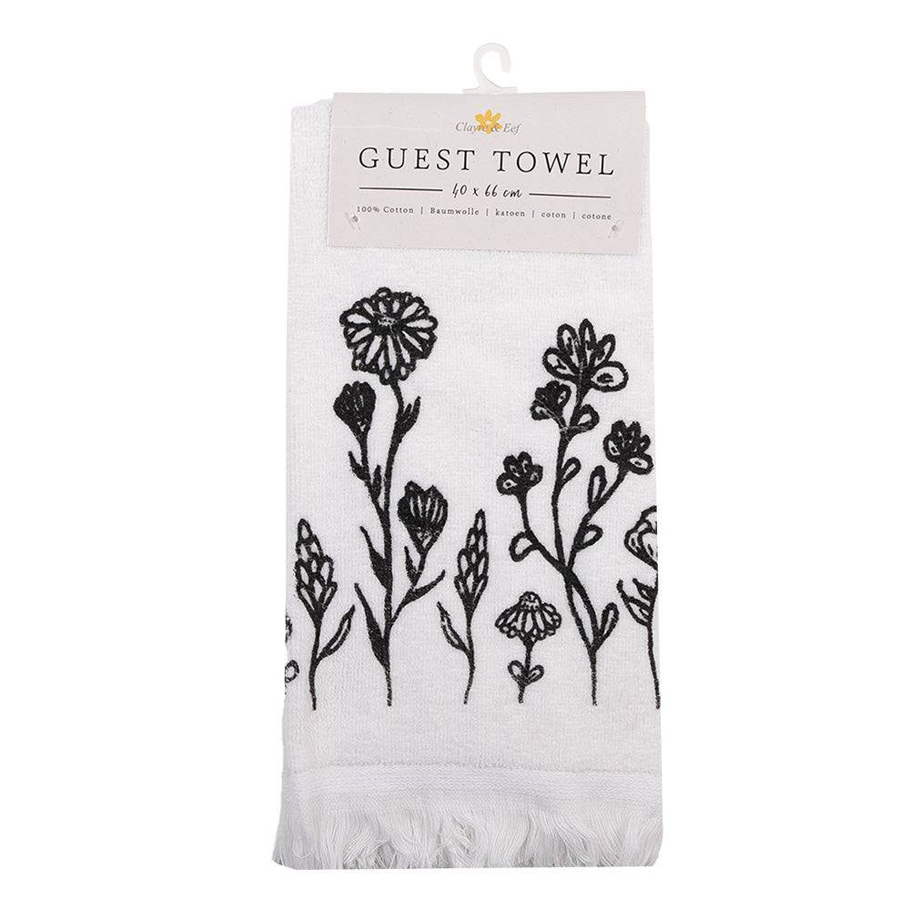 Clayre & Eef Gastendoekje 40x66 cm Wit Zwart Katoen Bloemen Toilet