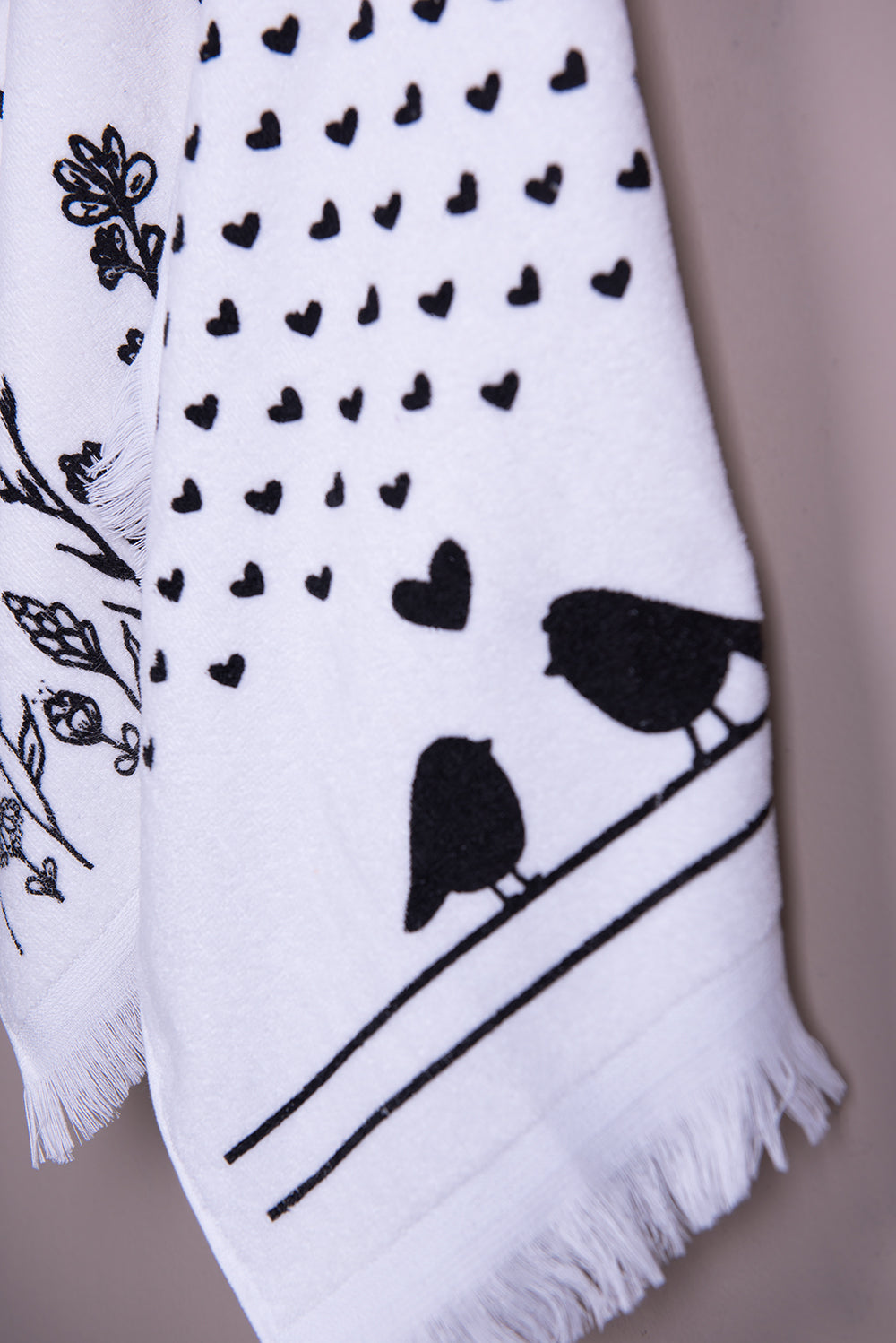 Deze vrolijke Toilethanddoek/Gastendoekje van het merk Clayre & Eef met hartjes en vogeltjes motief op een witte achtergrond is mooi en praktisch tegelijk. De zwarte print in een landelijke stijl met een romantische uitstraling geeft een gezellige en leuke sfeer aan je toilet/keuken. De toilethanddoek/gastendoekje is gemaakt van 100% katoen en is voorzien van een handig lusje om de toilethanddoek/gastendoekje op te hangen. De afmeting van de toilethanddoek/gastendoekje is 40x66 cm . Staat mooi in jouw toilet/keuken en past binnen elk interieur. Onze toilethanddoek/gastendoekje kunnen gewassen worden in de wasmachine. Deze toilethanddoek/gastendoekje komen uit de keukentextielserie Love Birds. In deze prachtige serie vind je ook bijpassende artikelen zoals ovenhandschoenen, tafelkleden, tafellaken, tafellopers, kussens, placemats, servetten, schorten, maar ook thee-en keukendoeken, pannenlappen en broodmanden. Met home-textiel van Clayre & Eef wordt jouw thuis nog gezelliger!