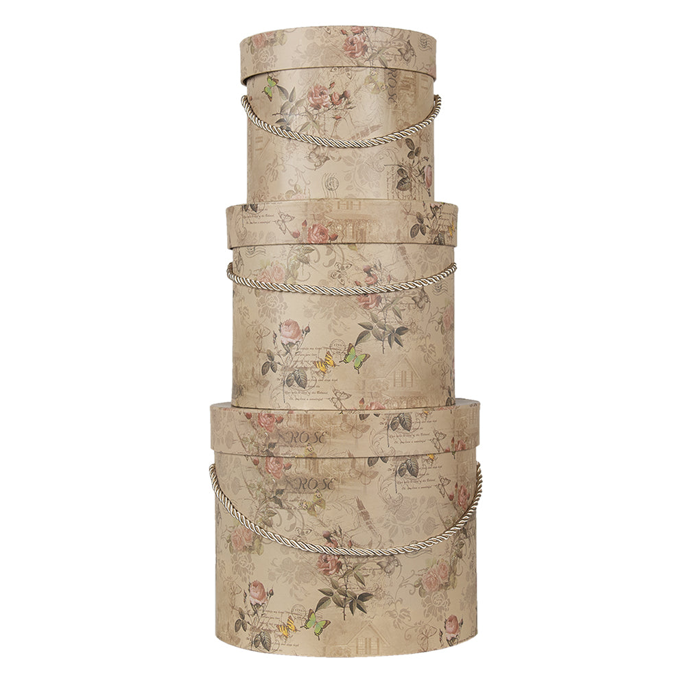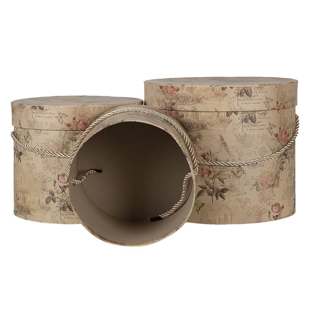 Clayre & Eef Hoedendoos Set van 3 Ø 23x20 cm Beige Roze Karton Bloemen