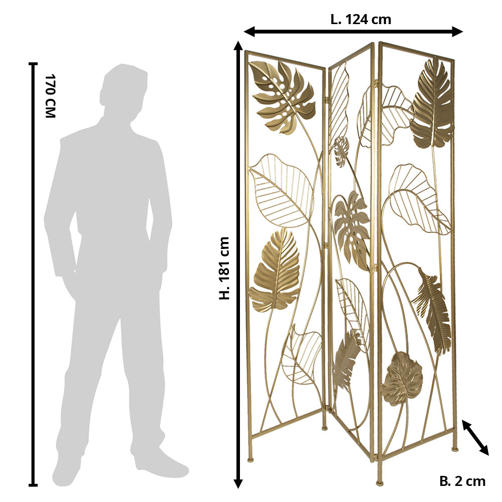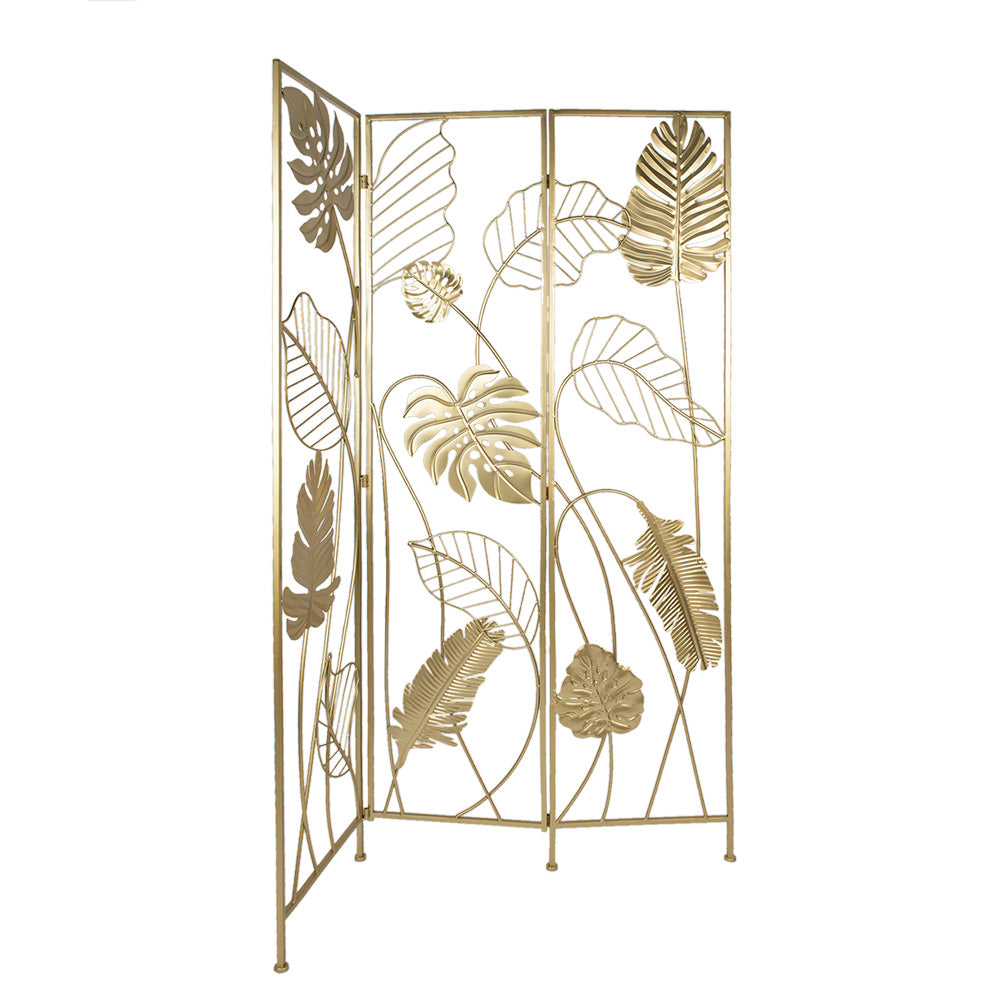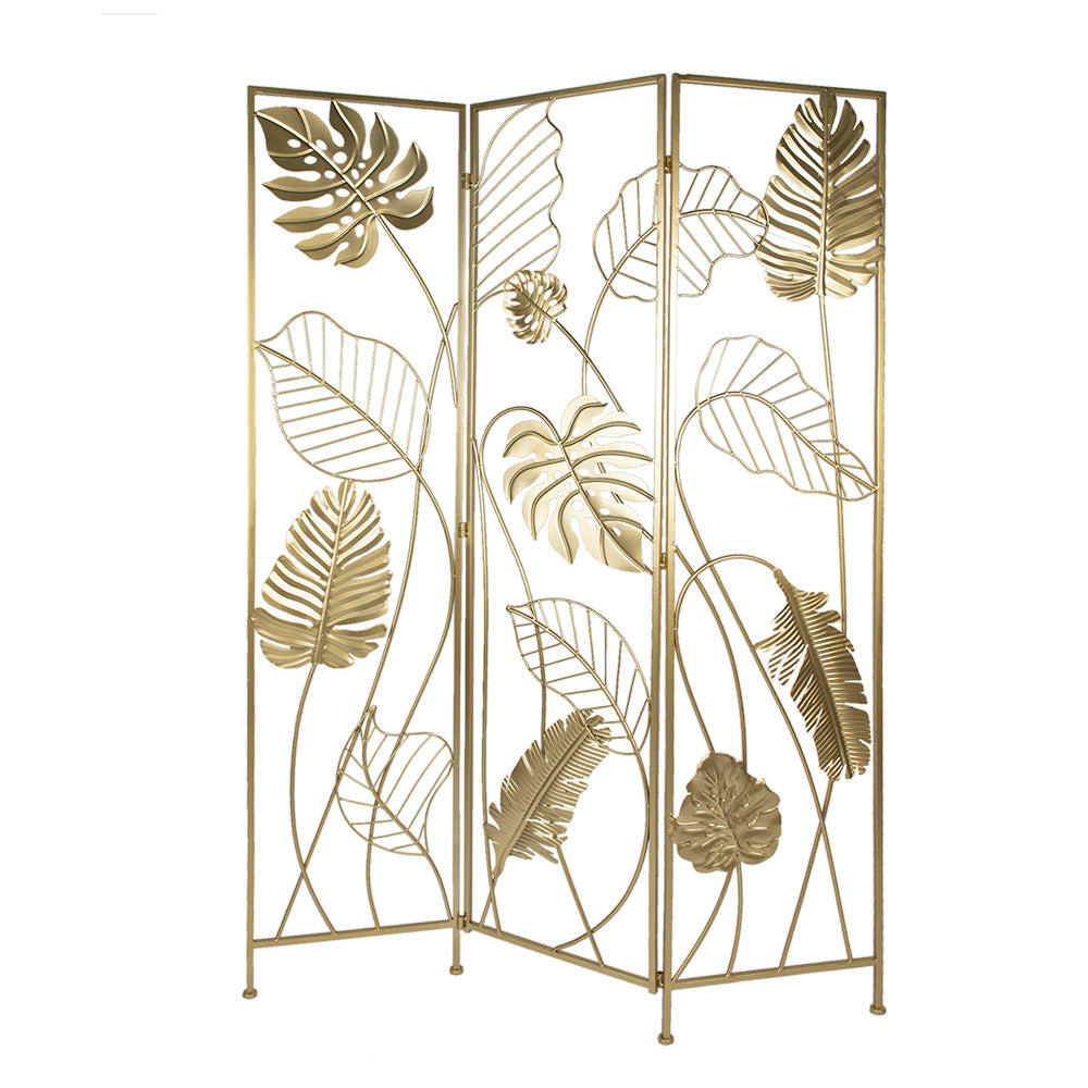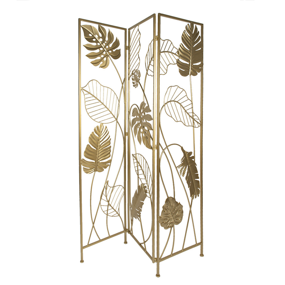 Clayre & Eef Kamerscherm 124x2x181 cm Goudkleurig IJzer Bladeren