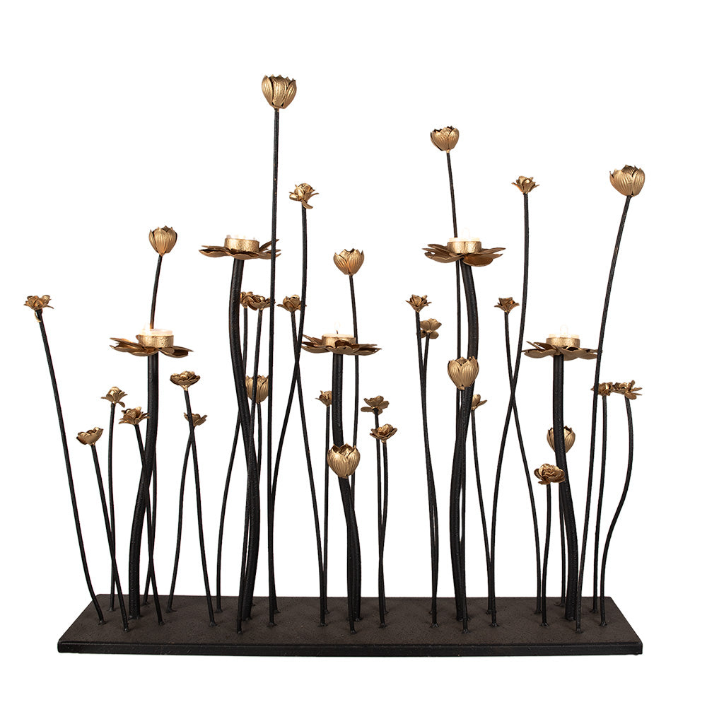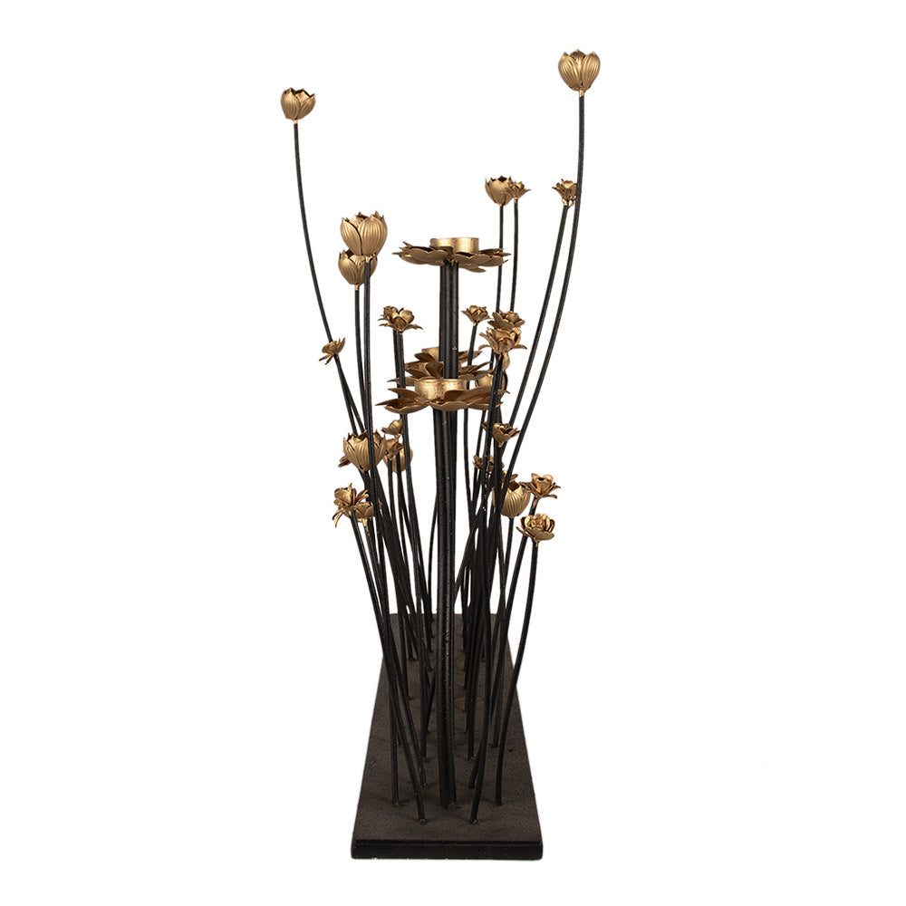 Clayre & Eef Kandelaar 69x15x66 cm Zwart Goudkleurig Metaal Bloemen
