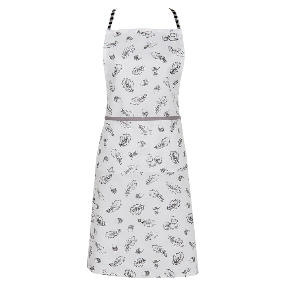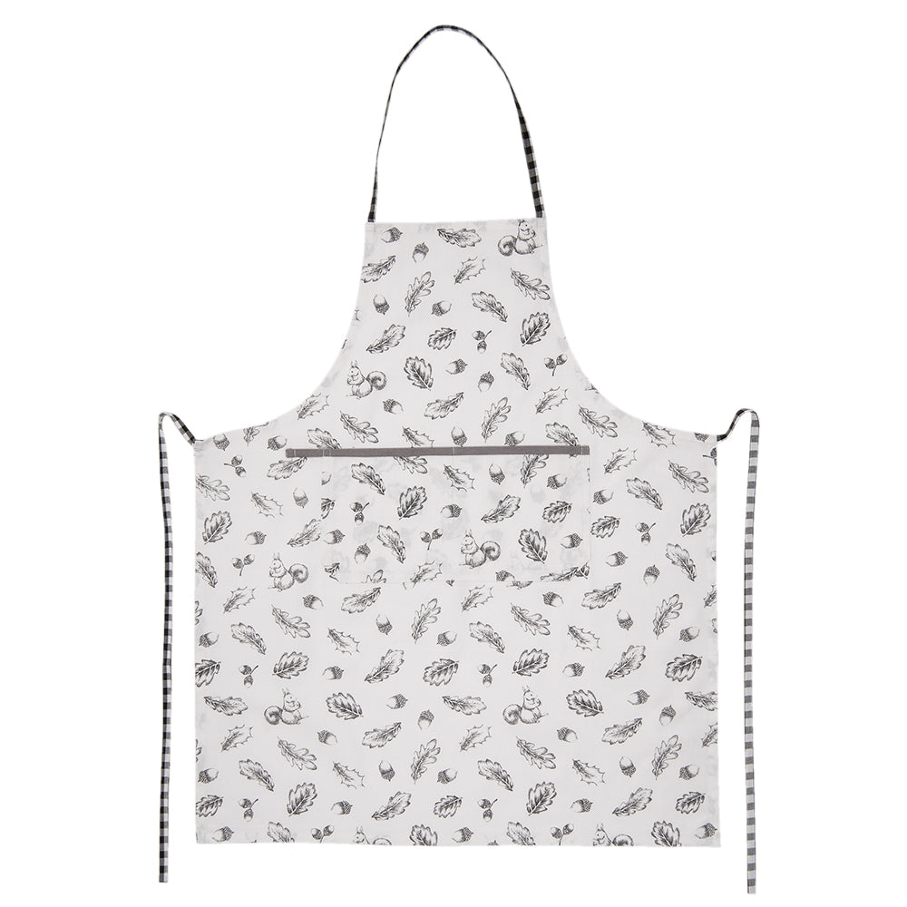 Clayre & Eef Keukenschort 70x85 cm Grijs Wit Katoen Eekhoorn Herfst