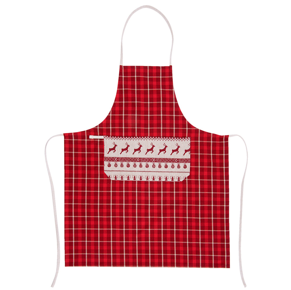 Deze vrolijke kook-keukenschort van het merk Clayre & Eef met kerst motief, voorzien van een beige rendier op berg vak is handig, mooi en praktisch tegelijk. De rood/beige geruite print in landelijke stijl met een romantische uitstraling geeft een gezellige en warme sfeer aan je keuken. De kook-keukenschort is gemaakt van 100% katoen en je kunt de schort eenvoudig op de juiste lengte middels de bandjes in de nek verstellen en vast maken. De afmeting van de kookschort is 70x85 cm, en heeft een goede pasvorm. Staat mooi in jouw keuken, past binnen elk interieur en beschermt jou bij het bakken en kokkerellen van gerechten. Onze kook-keukenschort kunnen gewassen worden in de wasmachine. Deze kook-keukenschort komt uit de keukentextielserie Nordic Christmas. In deze prachtige serie vind je ook bijpassende artikelen zoals tafelkleden, tafellakens, tafellopers, kussens, placemats, servetten, schorten, maar ook thee-en keukendoeken, pannenlappen, ovenhandschoenen en broodmanden. Met keukentextiel van Clayre & Eef wordt jouw keuken nog gezelliger!