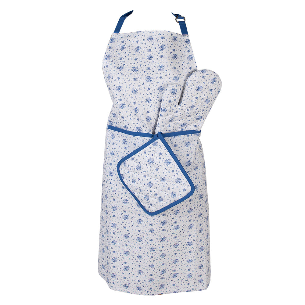 Clayre & Eef Keukenschort 70x85 cm Wit Blauw Katoen Roosjes