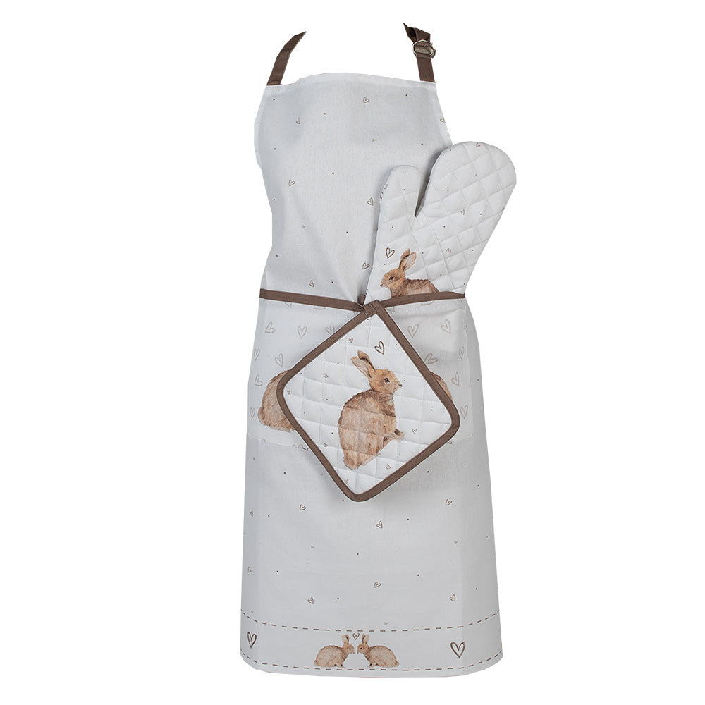 Als we aan Pasen denken, dan denken we aan de Paashaas. In deze textielserie staat twee schattige konijntjes centraal. Een neutrale serie die in elk interieur helemaal tot zijn recht zal komen. Het lieflijke hartjes patroon maakt van dit textiel een schattige serie die niet alleen tijdens de Paasdagen veel gezelligheid op tafel en in de keuken zal brengen, maar waar het hele jaar door van genoten kan worden. Met items als een tafelkleed, placemats, servetten en broodmandjes is een liefdevolle gedekte eettafel gegarandeerd. Keukenschort