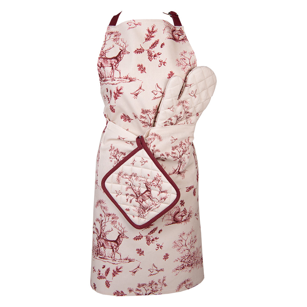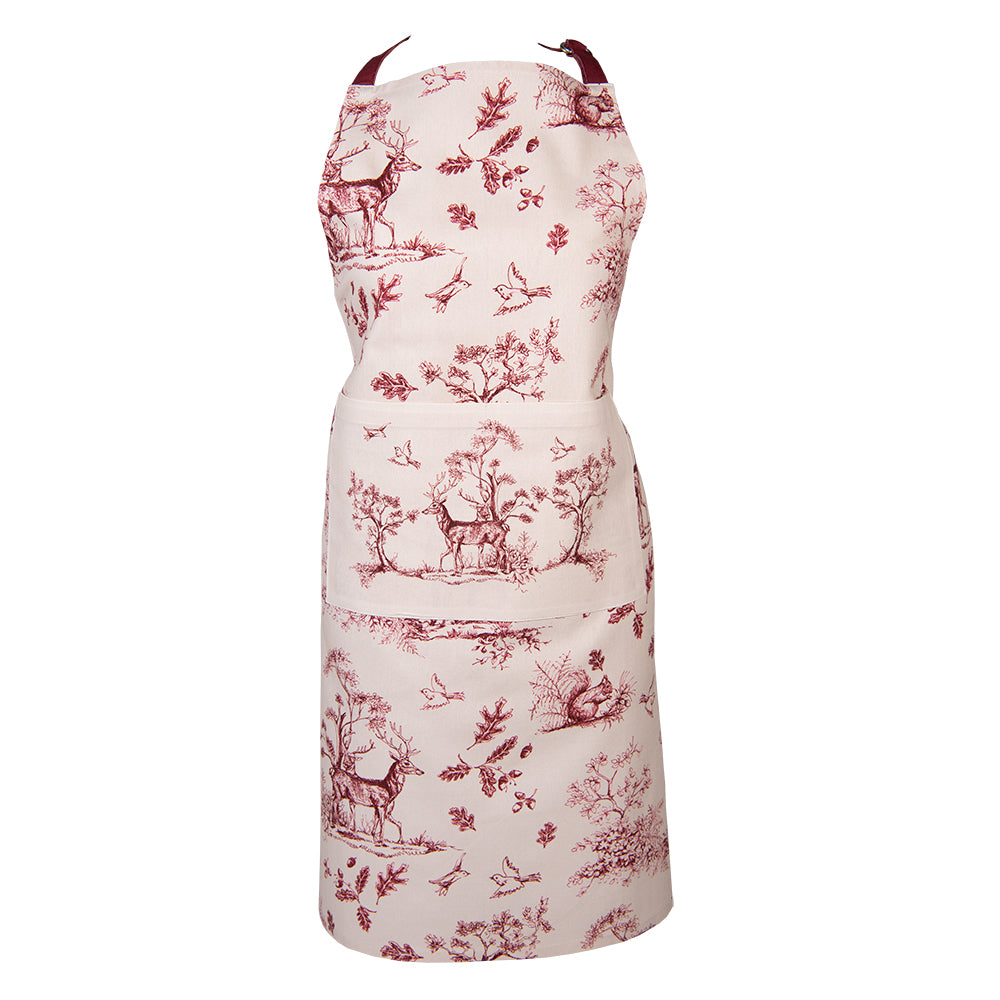 Wit met roze katoenen klassiek landelijk schort met de afbeelding van een rendier en bomen van het merk Clayre & Eef.