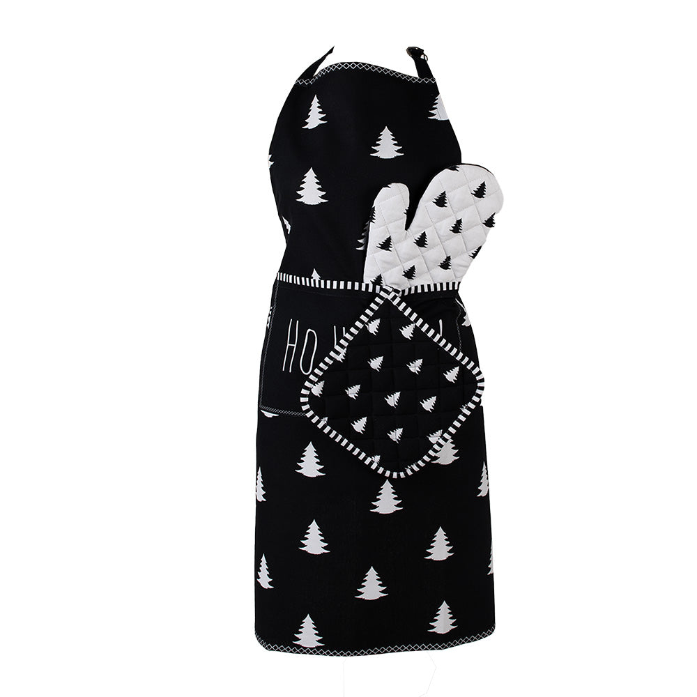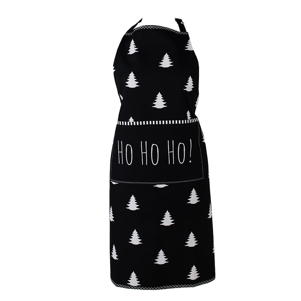 Clayre & Eef Keukenschort 70x85 cm Zwart Wit Katoen Kerstboom Ho Ho