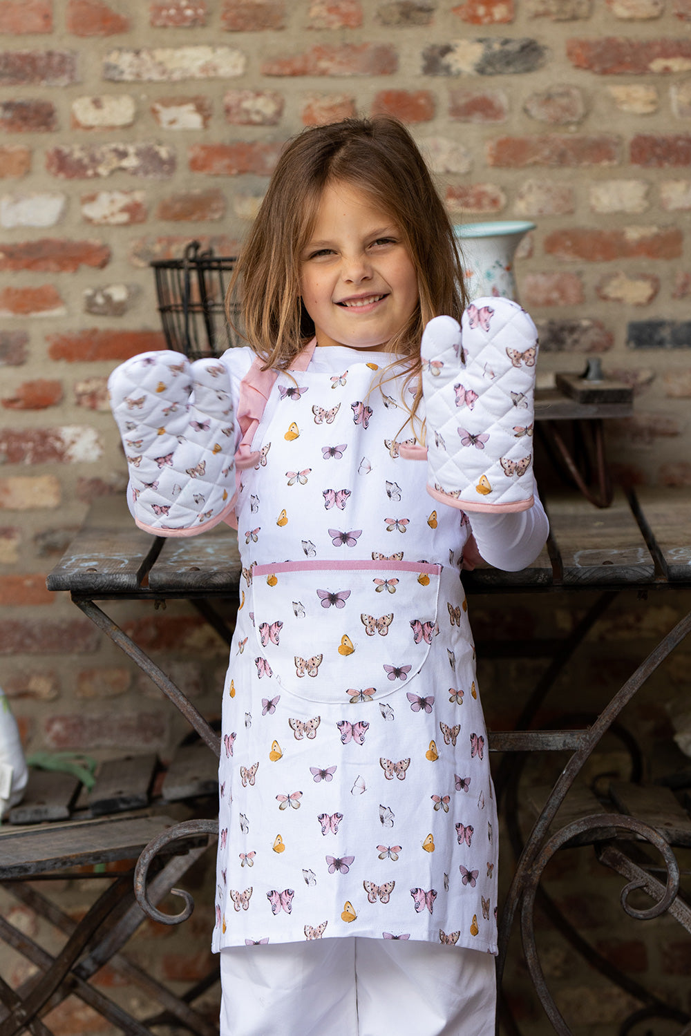 Clayre & Eef Kind Ovenwant 12x21 cm Beige Roze Katoen Vlinders