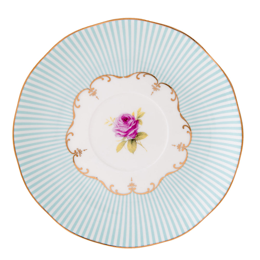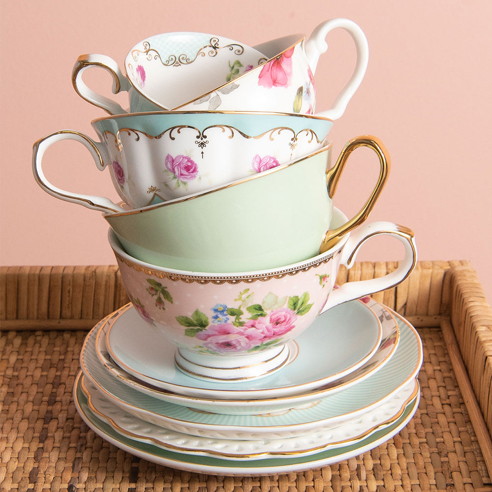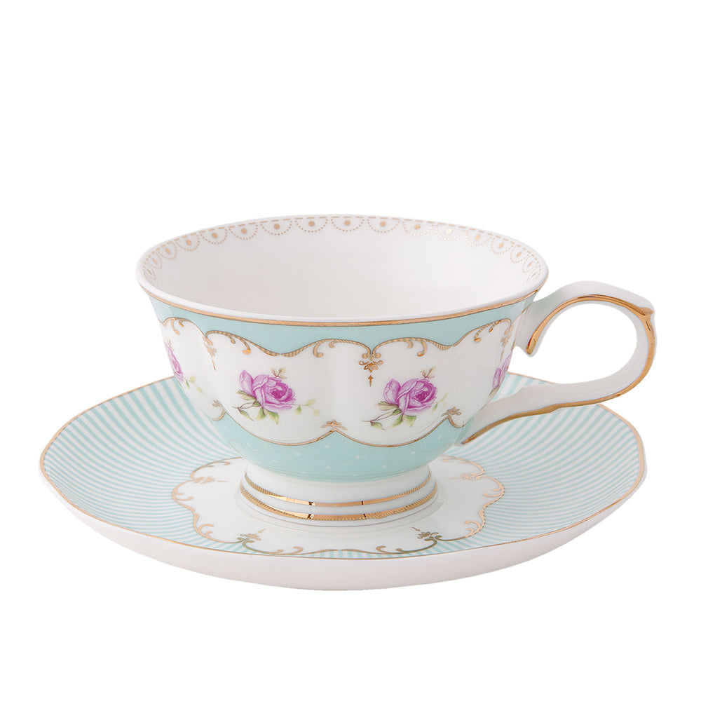 Clayre & Eef Kop en schotel 120 ml Groen Porselein Rond Bloemen