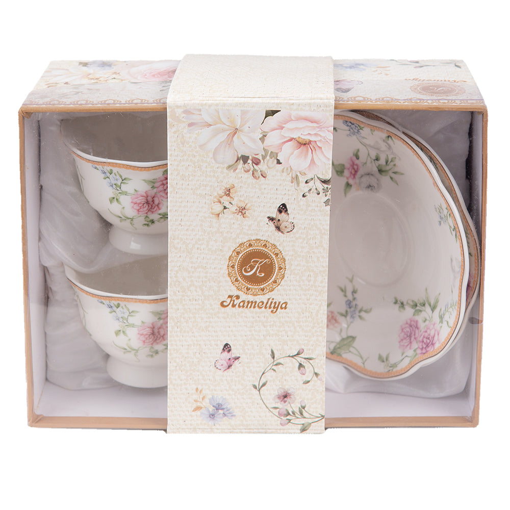 Clayre & Eef Kop en schotel Set van 2 220 ml Wit Roze Porselein