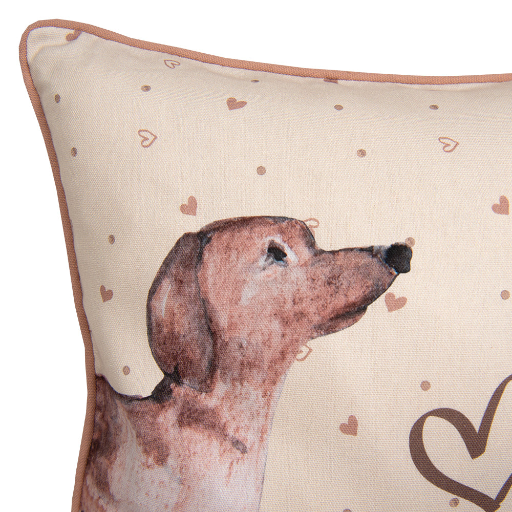 Katoenen kussenhoes Beige kleurig met bruin met een print van teckels van het merk Clayre & Eef.