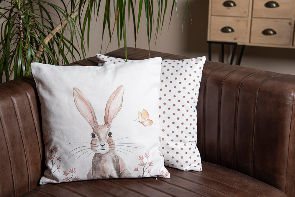 Landelijk Wit, Bruin Kussenhoes Sierkussenhoes Kussen hoes Konijn Katoen Vierkant. De leuke kleuren, en mooie patroontjes geven je direct een voorjaarsgevoel en haalt Pasen in huis