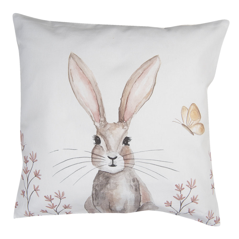 Clayre & Eef Kussenhoes 40x40 cm Wit Bruin Katoen Vierkant Konijn