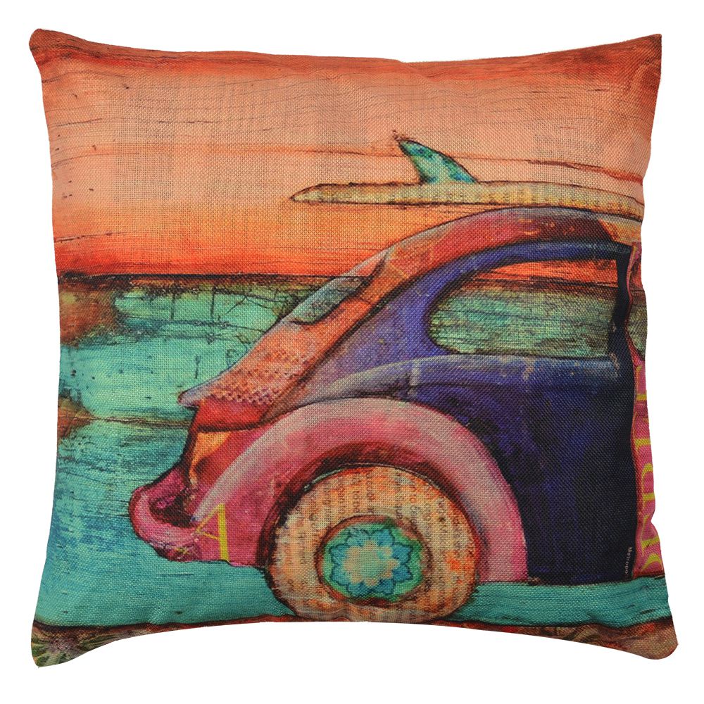 Clayre & Eef Kussenhoes 43x43 cm Groen Oranje Polyester Vierkant Auto