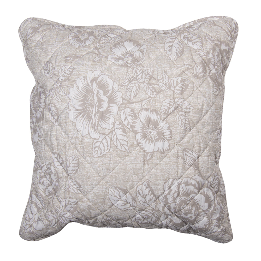 Clayre & Eef Kussenhoes 50x50 cm Beige Wit Polyester Vierkant Bloemen