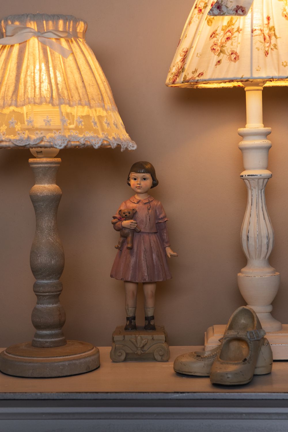 Clayre & Eef Lampenkap Ø 20x14 cm Beige Linnen Rond Bloemen Stoffen