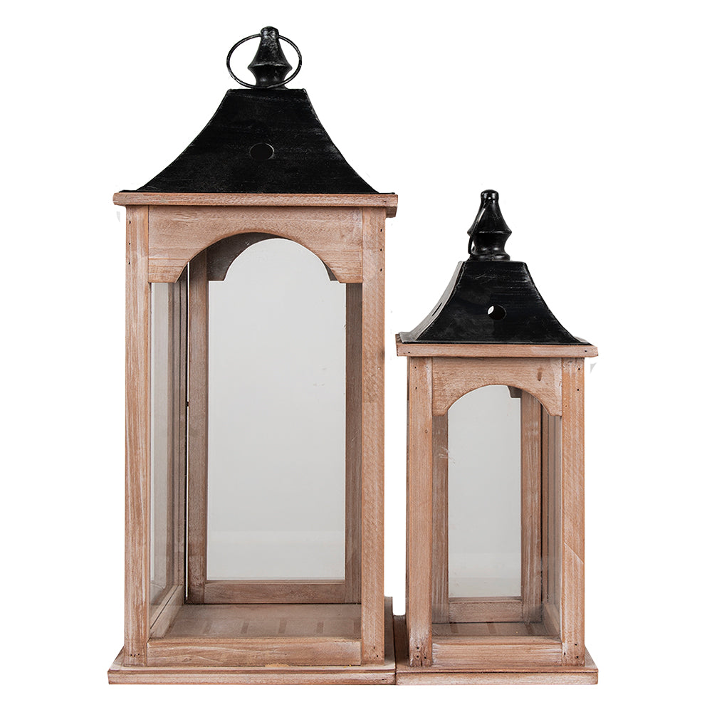 Clayre & Eef Lantaarn Set van 2 Bruin Ijzer Hout Vierkant