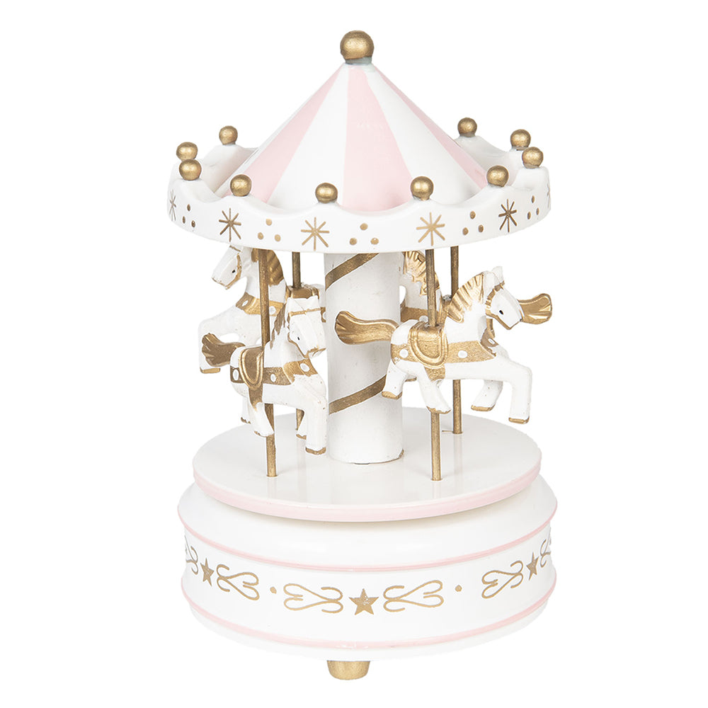 Clayre & Eef Muziekdoosje Ø 11x19 cm Wit Roze Kunststof Paardjes