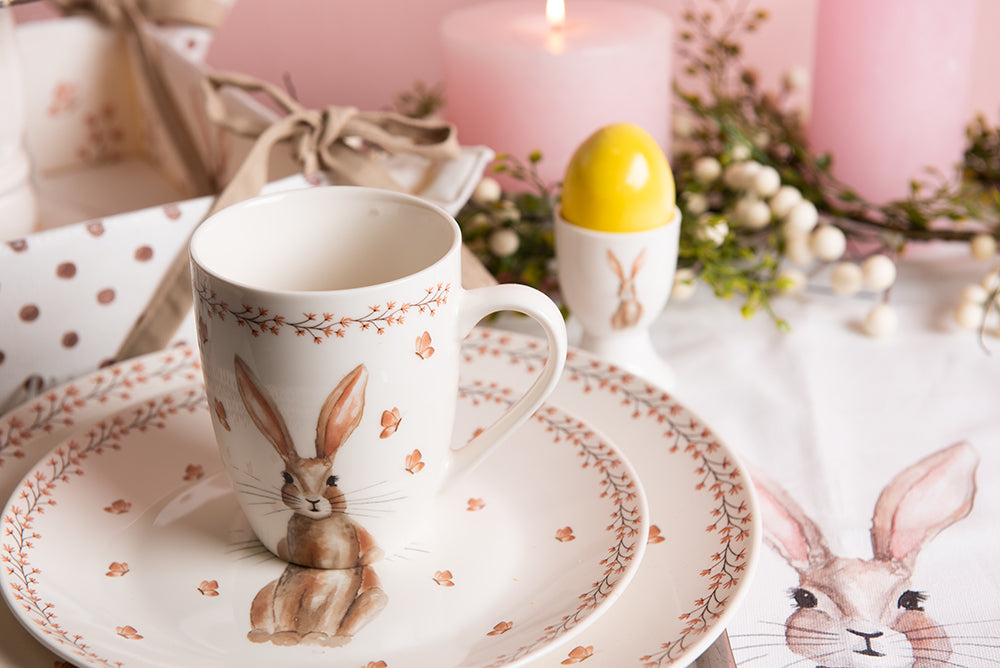 Clayre & Eef Ontbijtbord Ø 20 cm Beige Bruin Porselein Rond Konijn