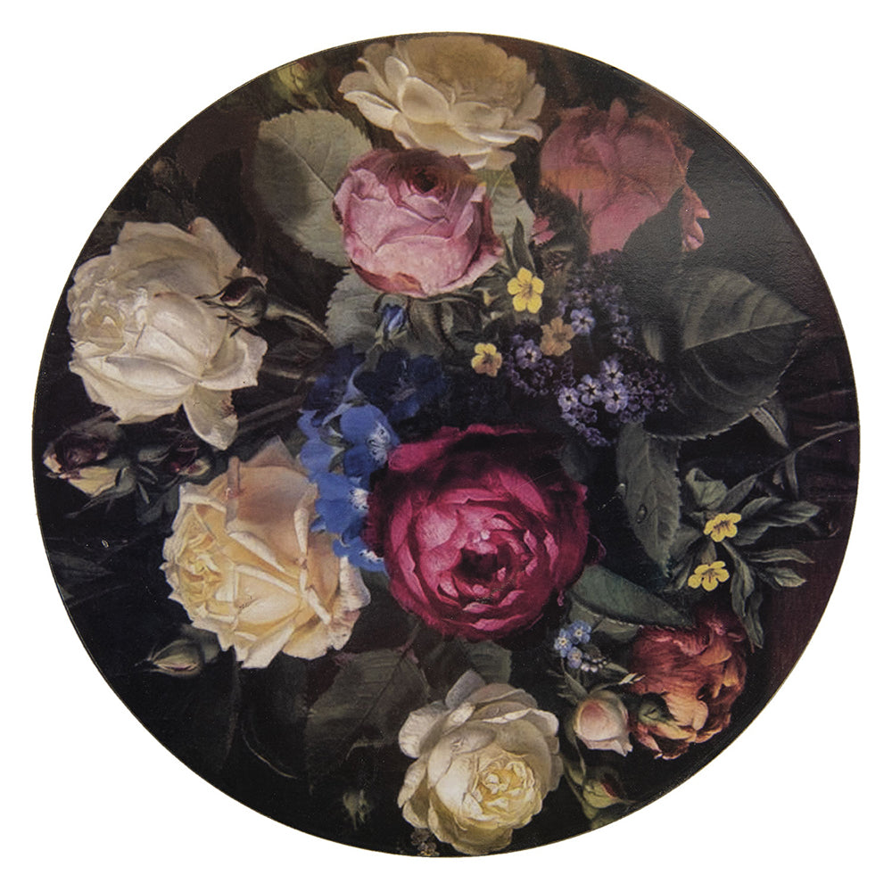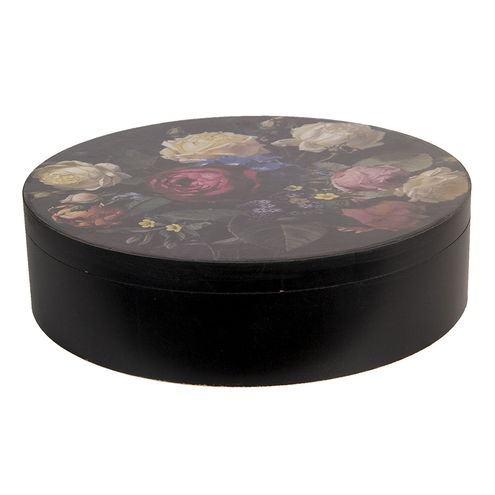 Clayre & Eef Opbergdoos Ø 25x7 cm Zwart Hout Rond Bloemen Opbergbox