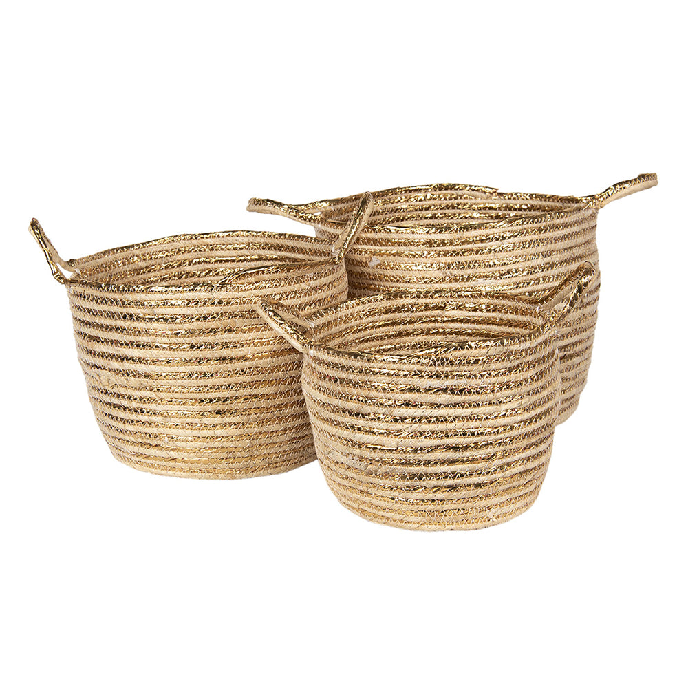 Clayre & Eef Opbergmanden Set van 3 Ø 31 Ø 28 Ø 23 cm Goudkleurig