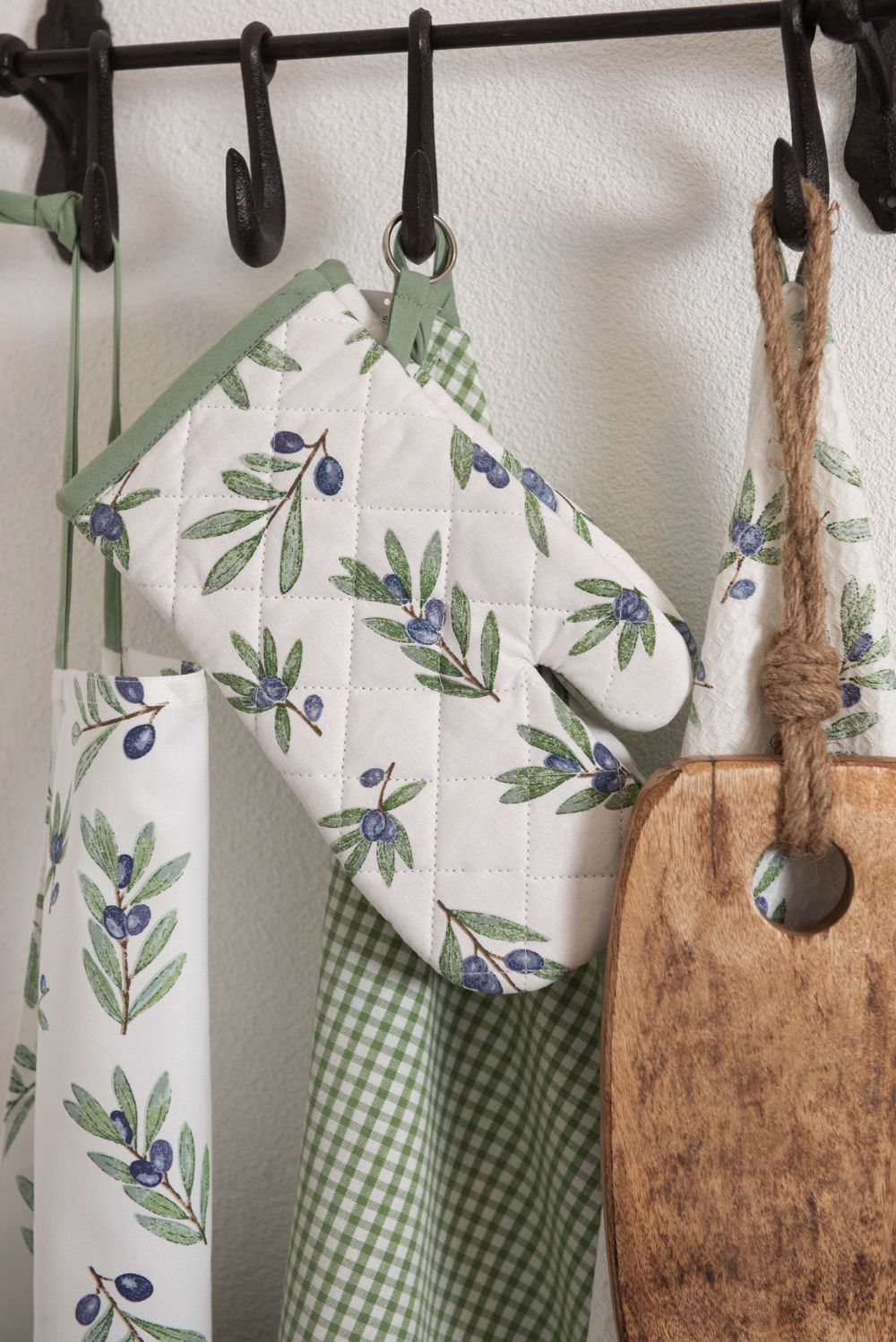 Denk je aan olijven, dan denk je aan mediterrane oorden. Een textielserie die zowel in een groene als blauwe variant verkrijgbaar is. De olijfranken geven deze serie hèt ultieme vakantiegevoel. Mooi vormgegeven tafelkleden en tafellopers creëren op tafel een fijne sfeer die compleet gemaakt kan worden met bijpassend servies. Het fraai vormgegeven keukentextiel met items als keukenschorten, pannenlappen en keukendoeken maken ook de keuken tot een waar kookparadijs.