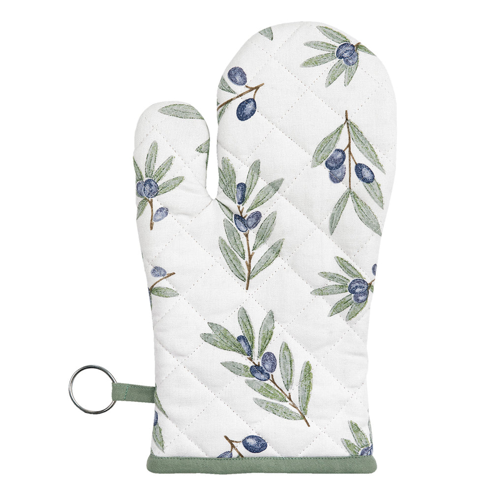 Deze stijlvolle ovenhandschoen van het merk Clayre & Eef met olijven motief op een witte achtergrond met groene ruit motief is mooi en praktisch tegelijk. De print in landelijke stijl met een romantische uitstraling geeft een gezellige en warme sfeer aan je keuken. De ovenwant is gemaakt van 100% katoen met een polyester vulling voor isolatie en is voorzien van een handig lusje om de ovenhandschoen op te hangen. De afmeting van de ovenwant is 16x30 cm, past mooi om jouw hand en geeft een goede grip. Staat mooi in jouw keuken, past binnen elk interieur en helpt jou veilig en makkelijk warme gerechten uit oven of magnetron te halen. Onze ovenwanten kunnen gewassen worden in de wasmachine. Deze Ovenhandschoenen komen uit de keukentextielserie Olive Garden. In deze prachtige serie vind je ook bijpassende artikelen zoals tafelkleden, tafellakens, tafellopers, kussens, placemats, servetten, schorten, maar ook thee-en keukendoeken, pannenlappen en broodmanden. Met keukentextiel van Clayre & Eef wordt jouw keuken nog gezelliger!