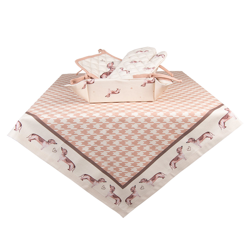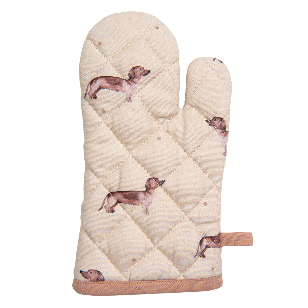 Katoenen ovenhandschoen Beige kleurig met bruin met een print van een teckel van het merk Clayre & Eef.