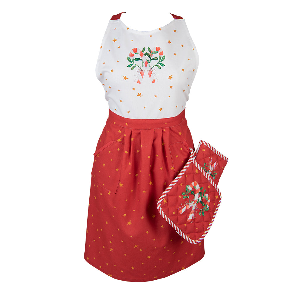 Landelijke pannenlap van katoen in de kleuren wit met groen en rood met een afbeelding van drie notenkrakers van het merk Clayre & Eef.