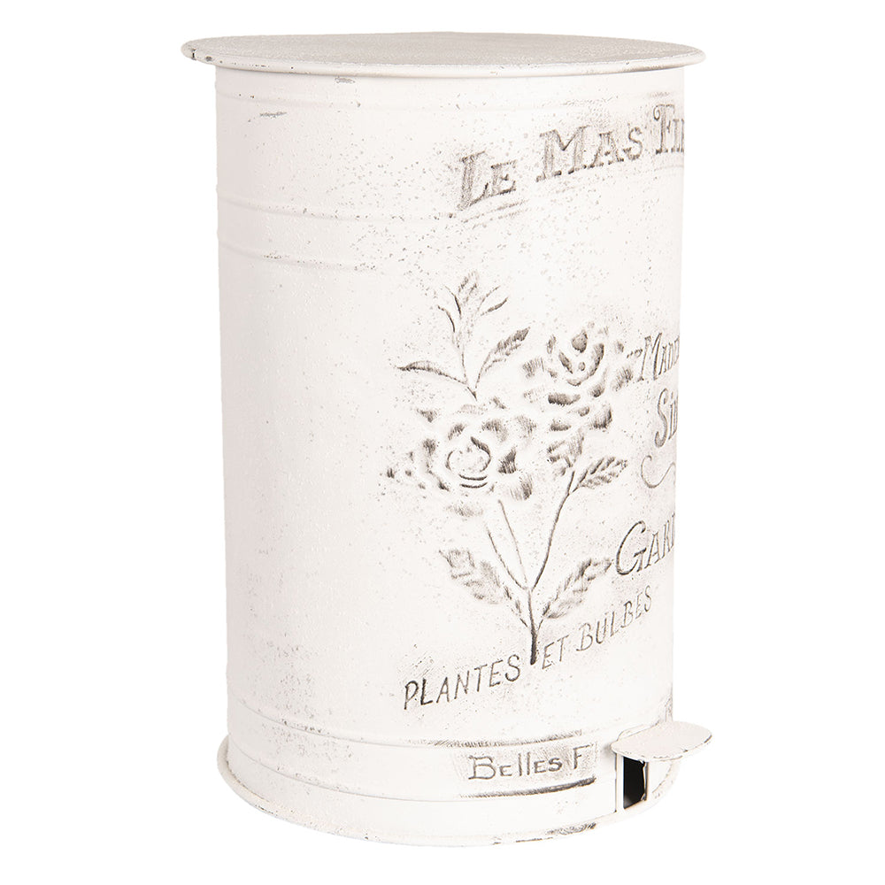 Clayre & Eef Pedaalemmer 29x35x45 cm Wit Ijzer Rond Prullenbak