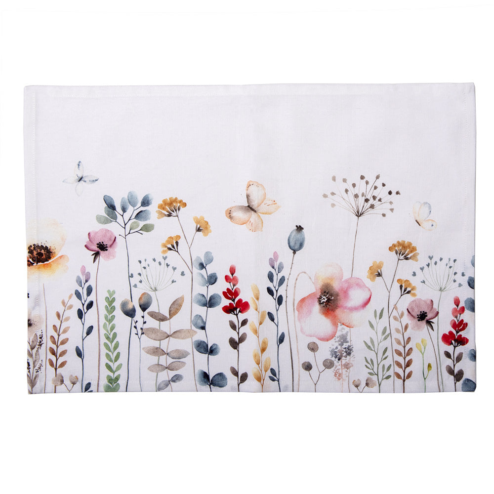 Deze stijl volle Stoffen Placemats van het merk Clayre & Eef met bloemetjes motief op een witte achtergrond is mooi en praktisch tegelijk. De meerkleurige print in een landelijke stijl met een romantische uitstraling geeft een gezellige en leuke sfeer aan je tafel. Voor het dagelijkse gebruik bij het ontbijt, middag- en avondeten liggen de placemats mooi op tafel en zijn geschikt voor iedere gelegenheid. De afmeting van de stoffen placemats is 48x33 cm en zijn in een set van 6 verpakt. Onze stoffen placemats zijn van 100% katoen en kunnen gewassen worden in de wasmachine. Deze stoffen placemats komt uit de keukentextielserie Flowerbomb. In deze prachtige serie vind je ook bijpassende artikelen zoals ovenhandschoenen, tafelkleden, tafellaken, tafellopers, kussens, placemats, servetten, schorten, maar ook thee-en keukendoeken, pannenlappen en broodmanden. Met home-textiel van Clayre & Eef wordt jouw thuis nog gezelliger