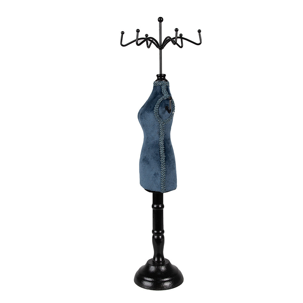 Clayre & Eef Sieraden Standaard 12x12x39 cm Turquoise Hout IJzer