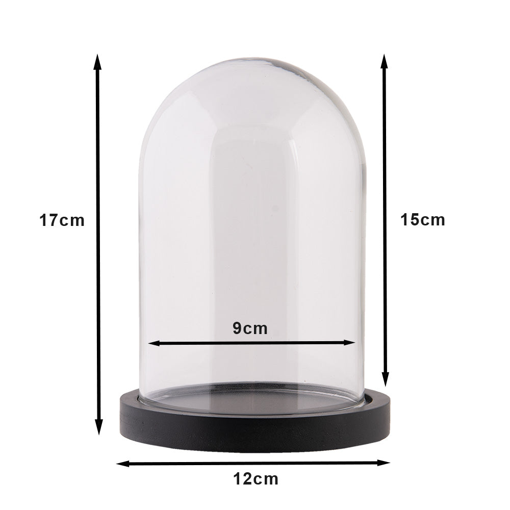 DECORATIEF GLAZEN STOLP: Onze glazen bel is 18 cm in hoogte (inclusief de basis) en heeft een totale basis diameter van 12 cm. De binnen diameter van het glas is 10 cm. De totale hoogte van het glas (exclusief basis) is 15 cm.