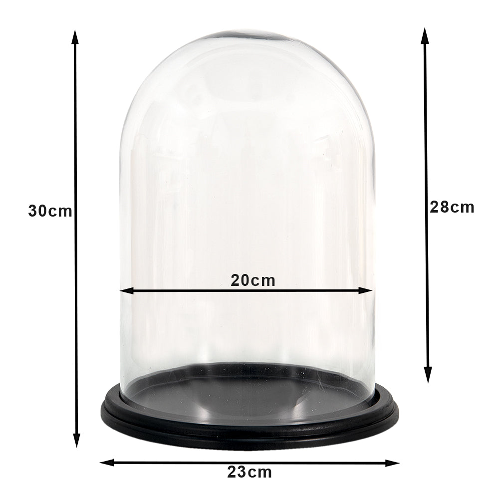 DECORATIEF GLAZEN STOLP: Onze glazen bel is 30 cm in hoogte (inclusief de basis) en heeft een totale basis diameter van 23 cm. De binnen diameter van het glas is 20 cm. De totale hoogte van het glas (exclusief basis) is 28 cm. HOUTEN BASIS: De basis van de stolp is gemaakt van MDF of hout. Het heeft groeven om de glazen pot in te passen, zodat deze niet kan verschuiven of wiebelen. KRISTAL HELDERE GLAZEN STOLP: Omdat Clayre & Eef stolpen kristal helder zijn, ziet u precies wat erin zit. De glazen stolpen met schotel kunnen worden gebruikt voor het tonen van je lievelingsspullen. Dit maakt een prachtig huis of huwelijkskopstuk. Vertoon speciale boeken, ornamenten, kaarsen, rijstlichten, 3d figuren en meer. Deze stolp is een perfect cadeau voor elke gelegenheid. LET OP deze glazen zijn ambachtelijk geproduceerd. Hierdoor kan het voorkomen dat er een luchtbelletje of een streepje in het glas zit.