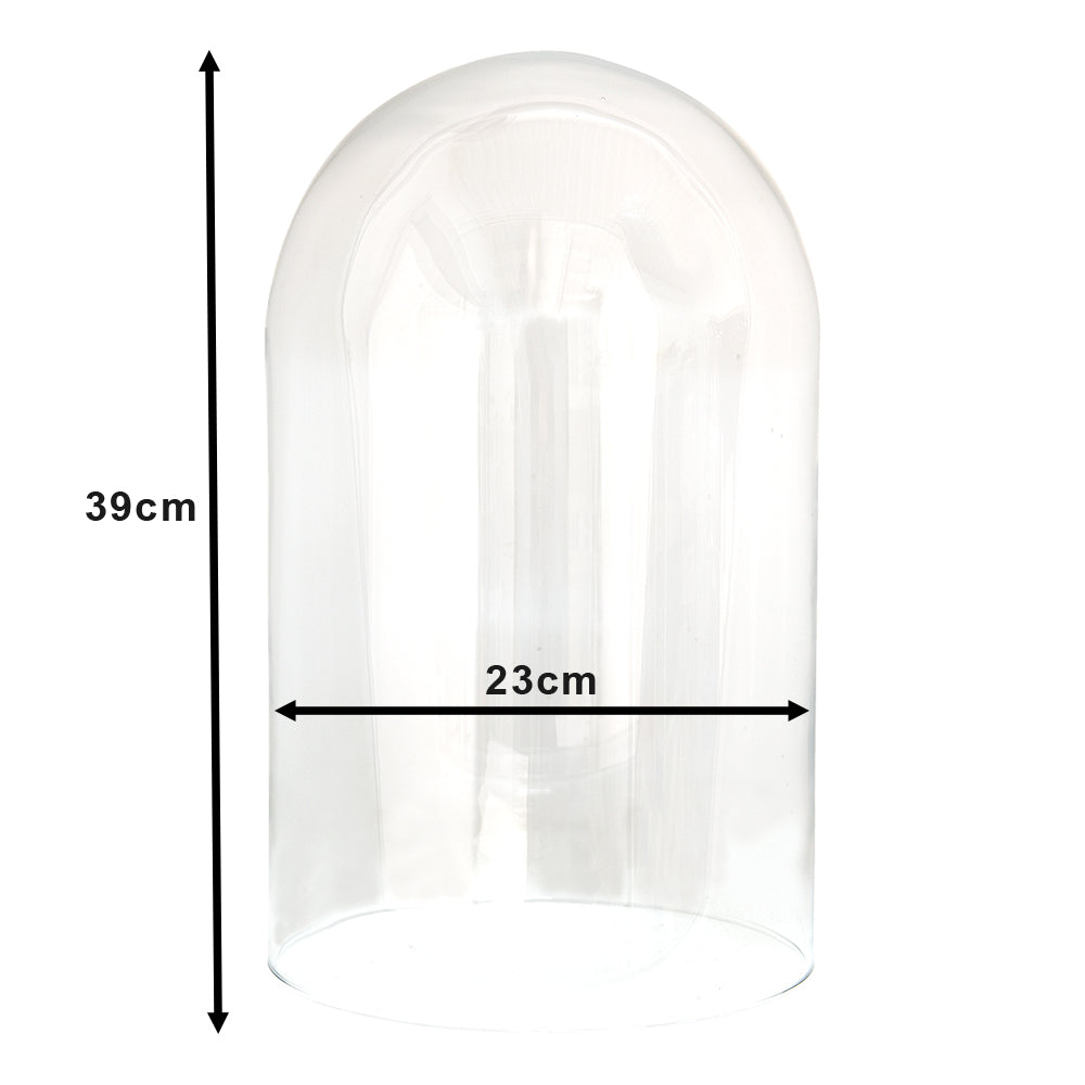 DECORATIEF GLAZEN STOLP: Onze glazen bel is 39 cm in hoogte en heeft een totale diameter van 23 cm.
