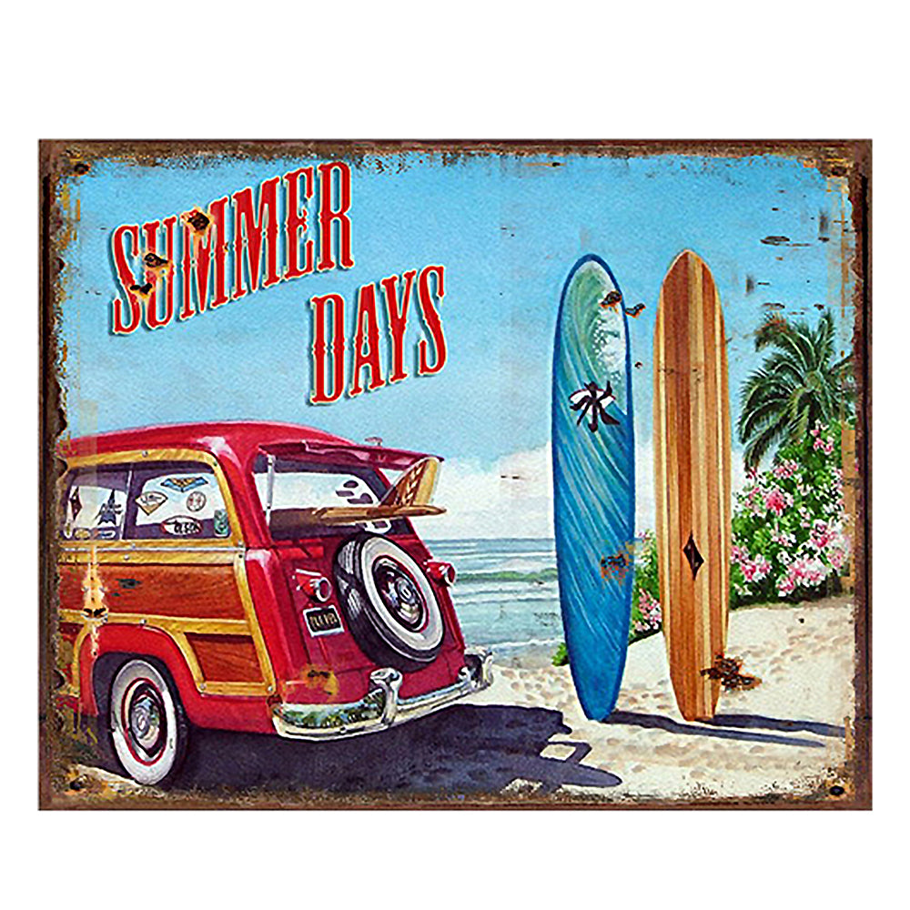 Clayre & Eef Tekstbord 25x20 cm Blauw Rood Ijzer Beach Wandbord