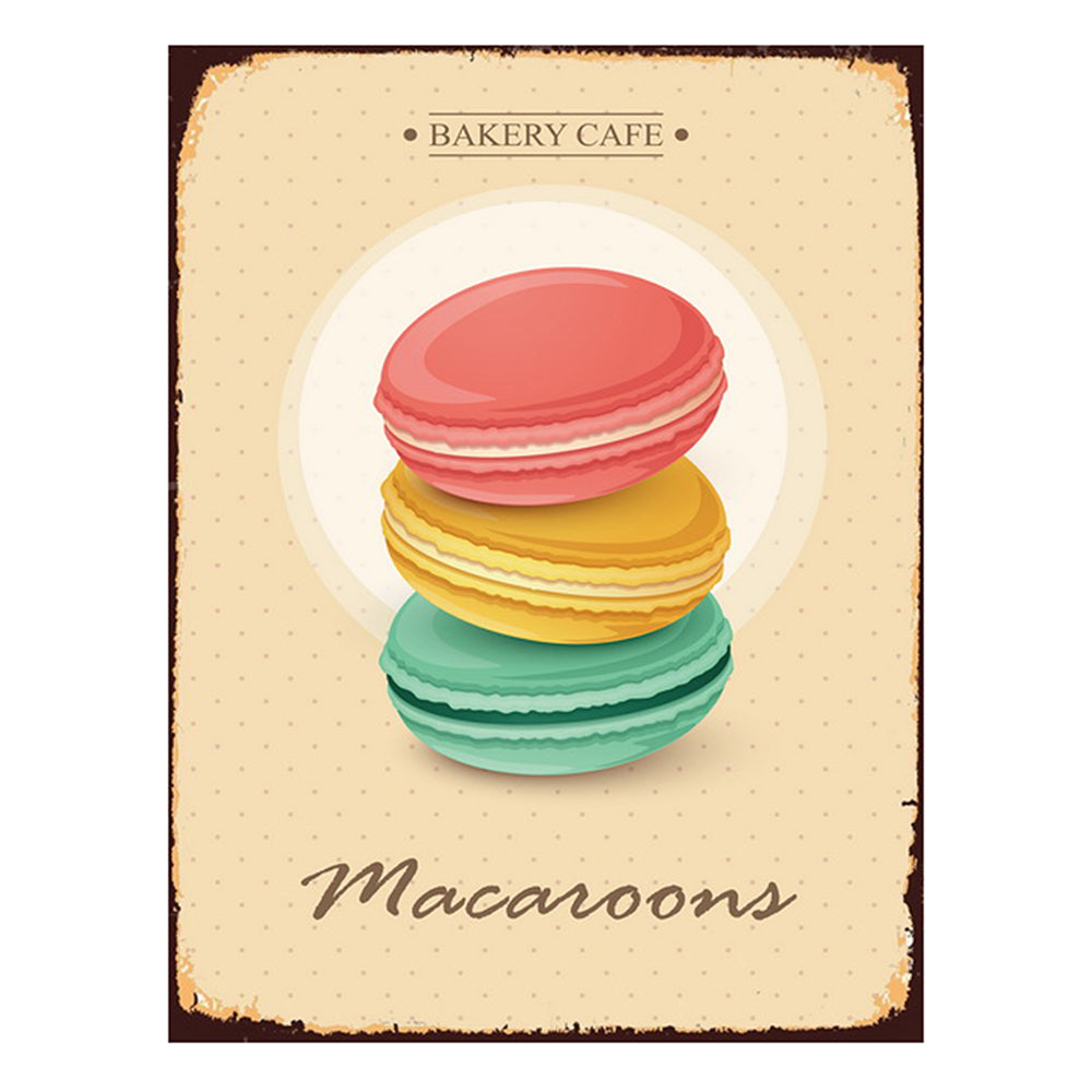 Clayre & Eef Tekstbord 25x33 cm Beige Ijzer Macarons Bakery Wandbord