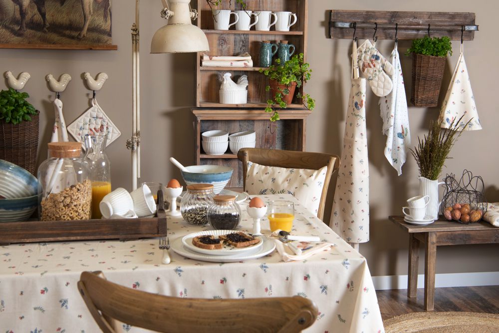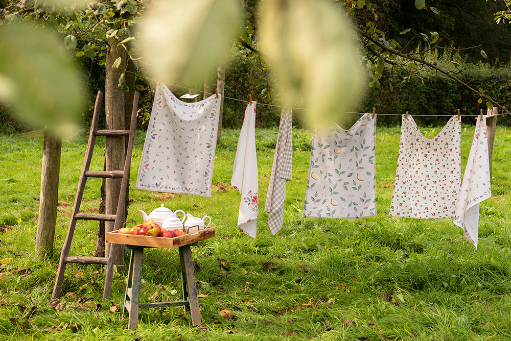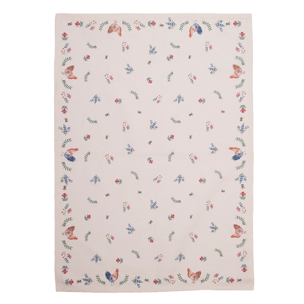 Clayre & Eef Theedoek 50x70 cm Beige Blauw Katoen Kip en Haan
