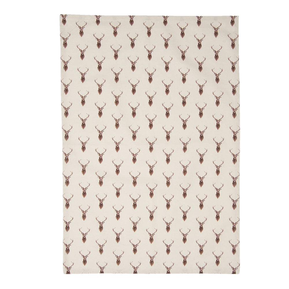 Clayre & Eef Theedoek 50x70 cm Beige Rood Katoen Rechthoek Hert